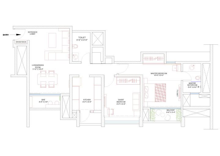 Balcony 148 is designed for a working couple in their 30’s. A 2BHK residence spread across 800 SQ. FT, with a balcony that overlooks expansive greenery in Kanjurmarg, Mumbai.